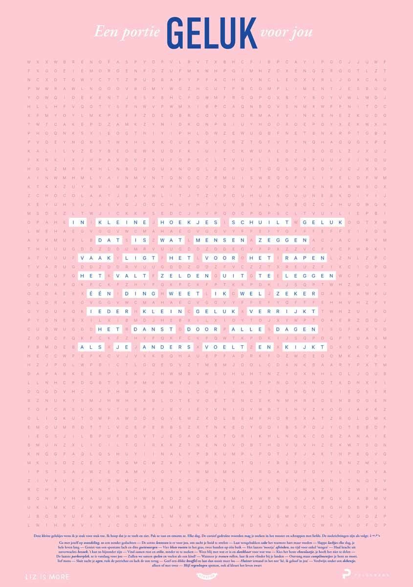 Zoek en vind de kleine gelukjes op deze unieke gedichtenposter met woordzoeker.